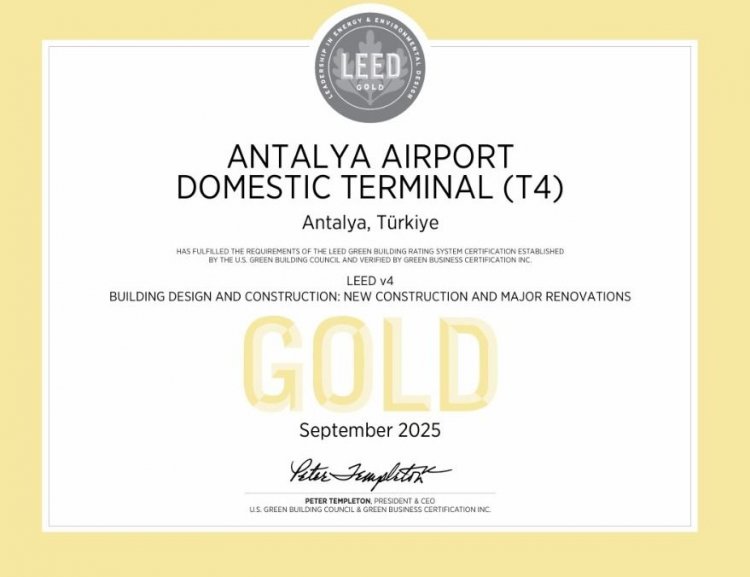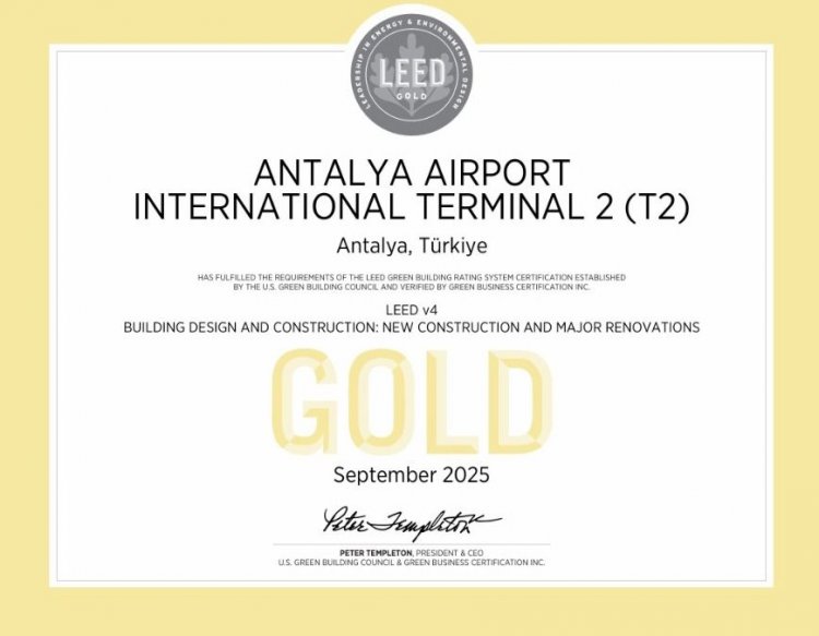ANTALYA HAVALİMANI, LEED ALTIN SERTİFİKASI İLE SÜRDÜRÜLEBİLİRLİKTE YENİ BİR BAŞARIYA İMZA ATTI